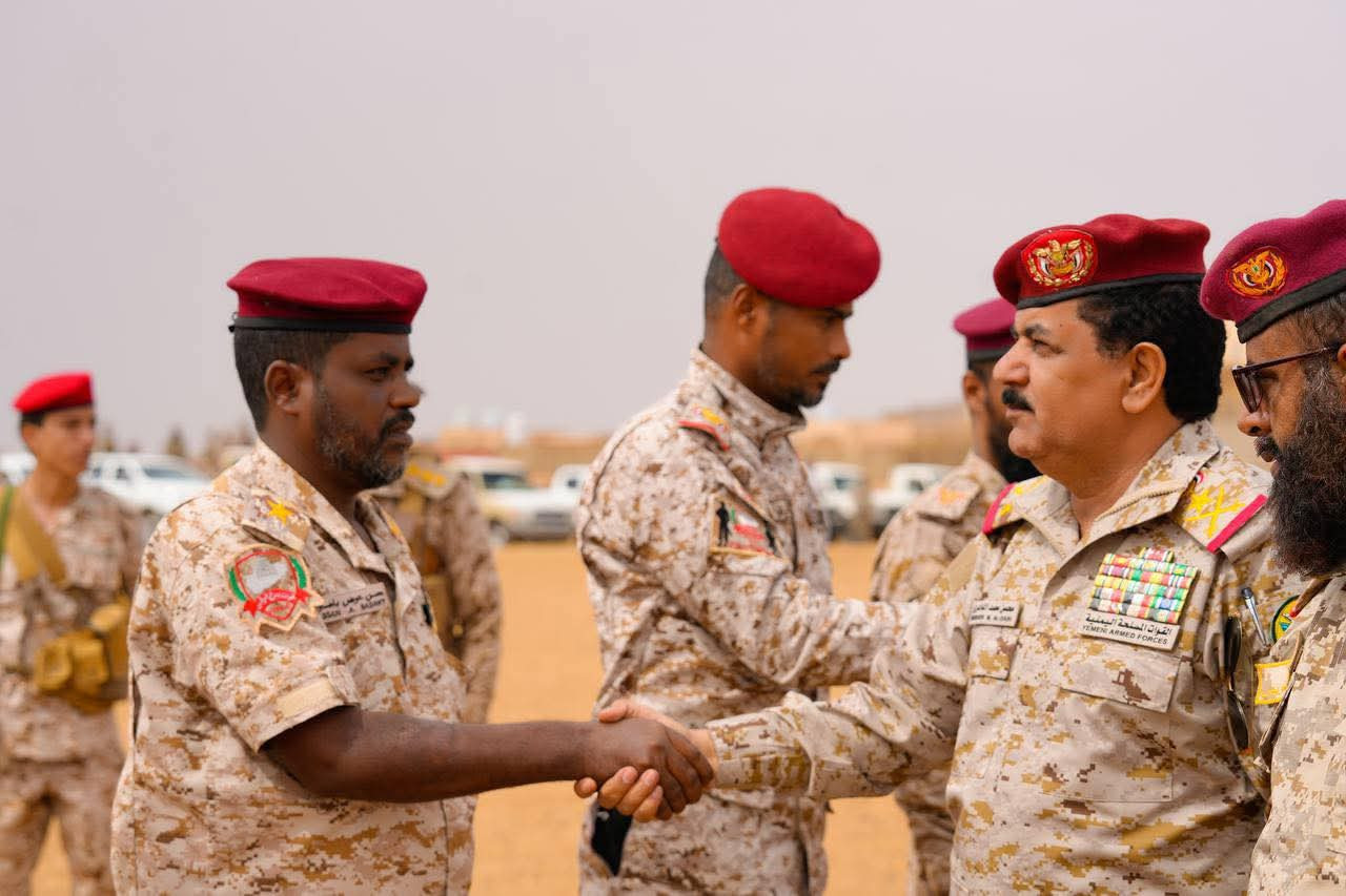 ونقل وزير الدفاع لمنتسبي قوات درع الوطن، تحيات القيادة السياسية ممثلة بفخامة الرئيس الدكتور رشاد محمد العليمي، رئيس مجلس القيادة الرئاسي، وأعضاء المجلس والحكومة.