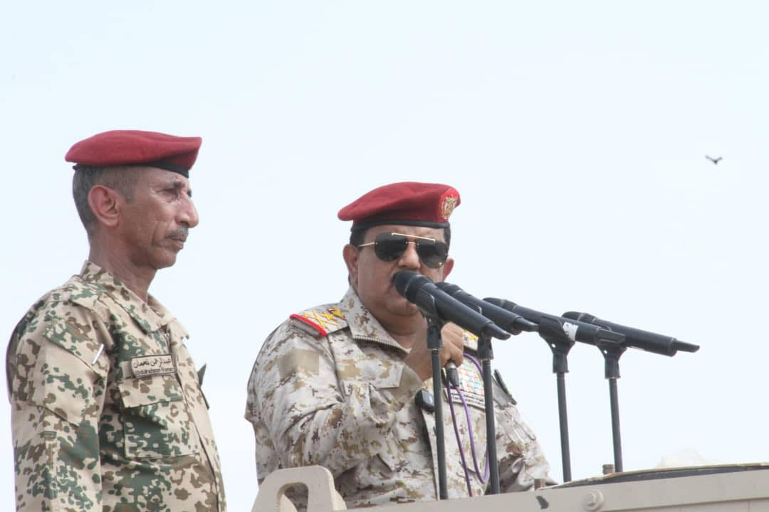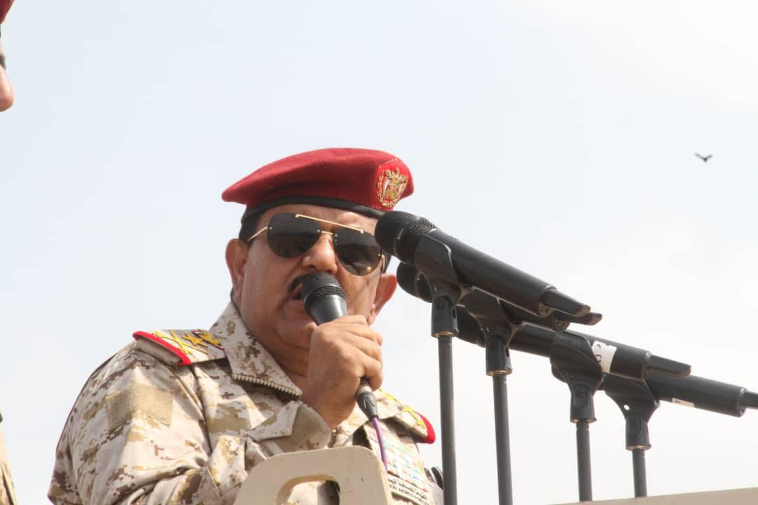 ودعا وزير الدفاع الجميع الى الوفاء بالقسم العسكري، مشيرا الى ما يعانيه الوطن والشعب من مليشيا الحوثي الارهابية المدعومة من النظام الايراني، مؤكدا ثقته بالقوات المسلحة لهزيمة هذه الميليشيا وإعادتها إلى جحورها.
