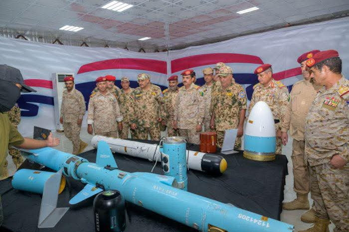 استعرض عضو مجلس القيادة الرئاسي، طارق صالح، ووزير الدفاع الفريق الركن محسن الداعري، معرض (الشحنة 750) الذي يضم نماذج من شحنة الأسلحة الإيرانية التي تم ضبطها من قبل بحرية واستخبارات المقاومة أواخر يونيو الماضي بكمية بلغت 750 طنا.