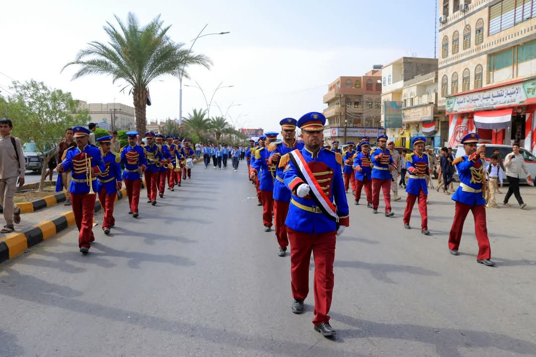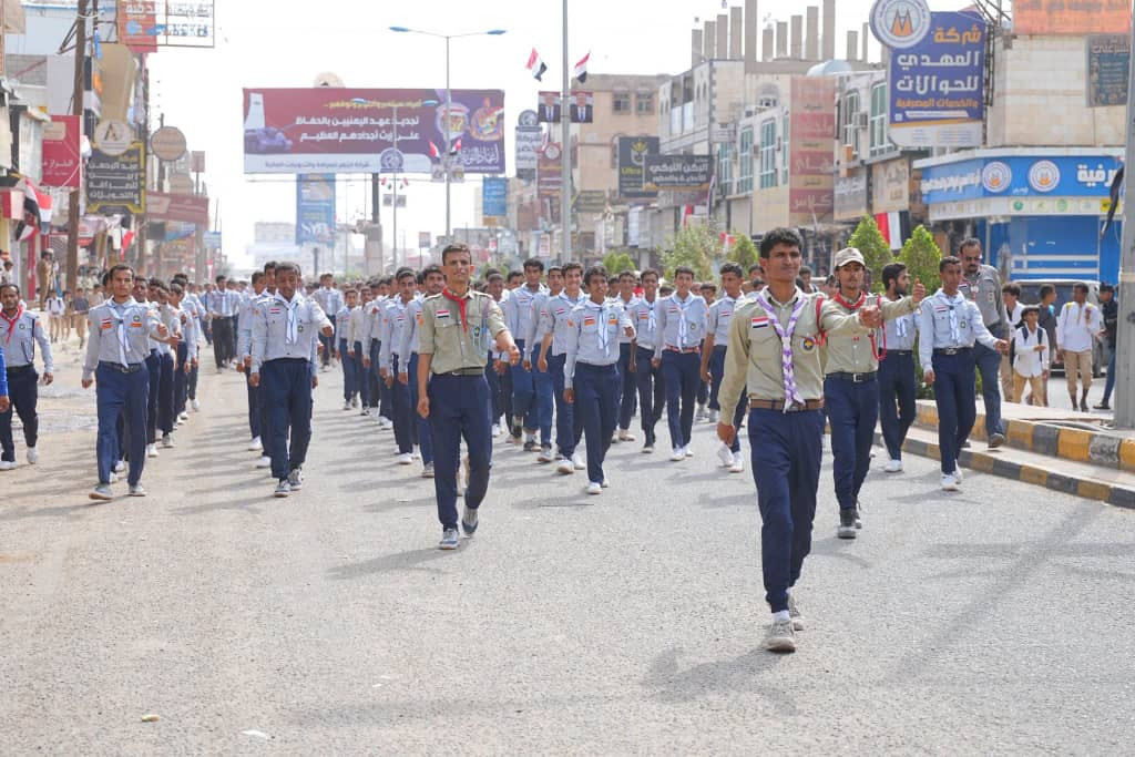 محافظة مأرب تحتفي بأعياد الثورة بمسيرة شبابية وكشفية بالموسيقى العسكرية