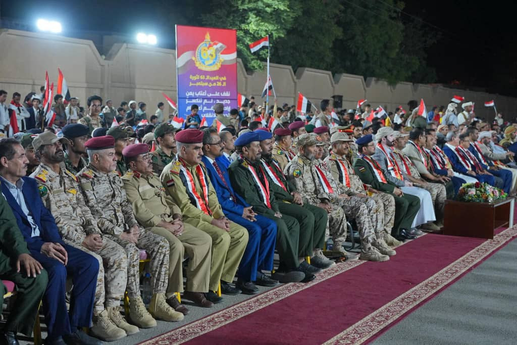 كما قدّم شباب الكشافة والمرشدات "وثيقة عهدٍ ووفاء معمدة بالدم" إلى فخامة الرئيس الدكتور رشاد محمد العليمي، رئيس مجلس القيادة الرئاسي، وأعضاء المجلس، جدّدوا فيها التزامهم بالبقاء أوفياء لثورتي السادس والعشرين من سبتمبر، والرابع عشر من أكتوبر، والدفاع عن مكتسباتهما وأهدافهما السامية.