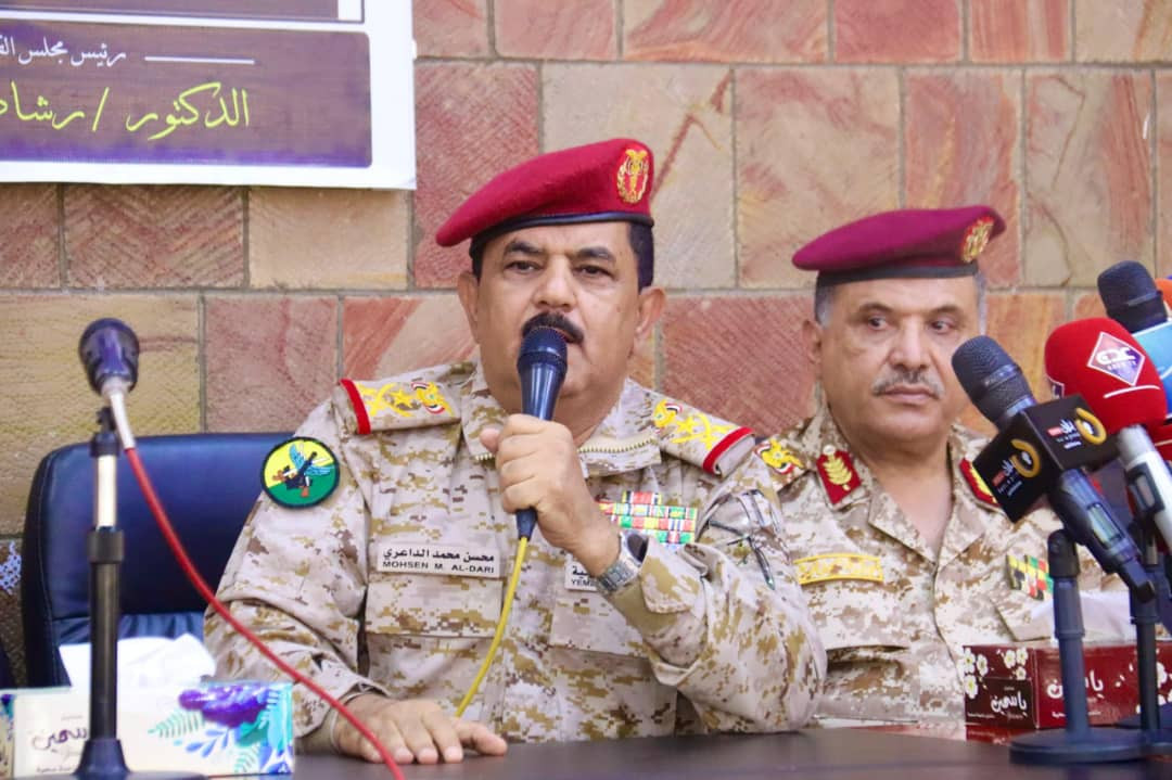 عقد وزير الدفاع، الفريق الركن، محسن الداعري، اليوم، ومعه محافظ محافظة تعز، نبيل شمسان، اجتماعاً موسعاً مع اعضاء السلطة المحلية، والقيادات العسكرية والأمنية، واعضاء مجلس النواب والوجاهات المجتمعية بمحافظة تعز.